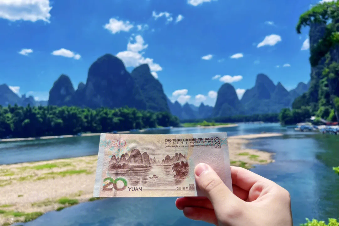 4.5小时全程大漓江豪华四星船 观20元人民币背景图 举世公认的世界第一流风景胜地